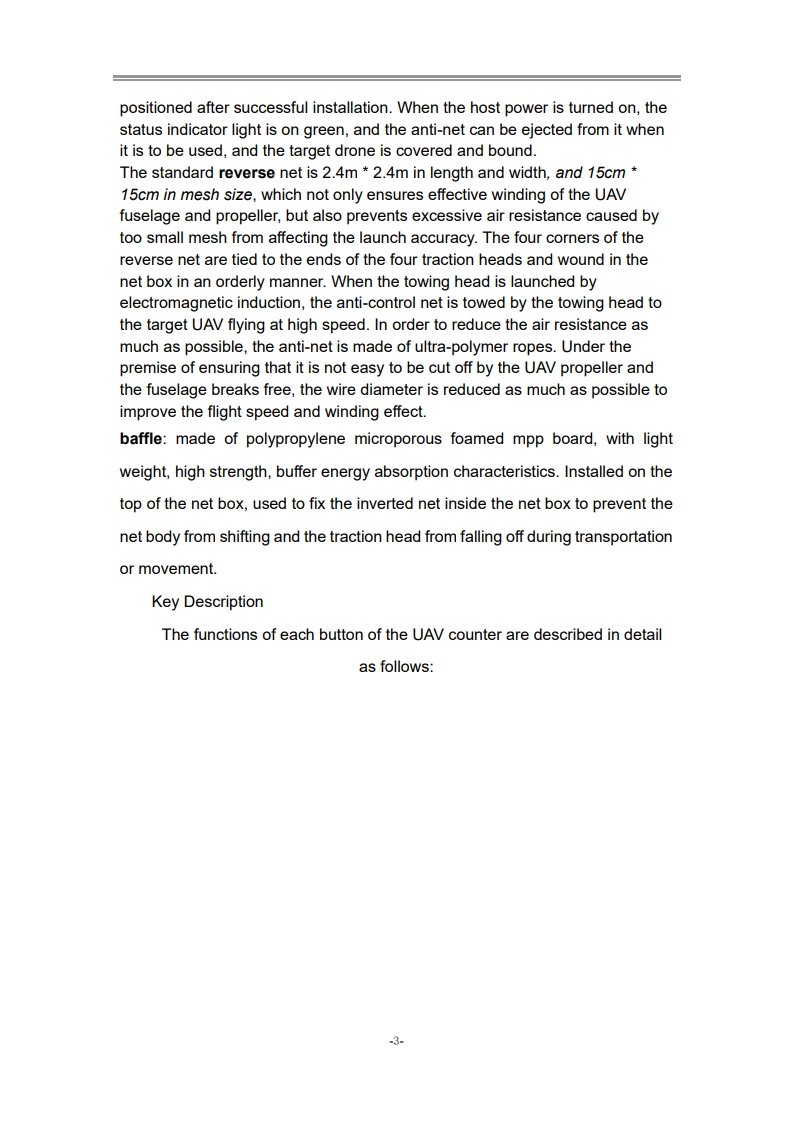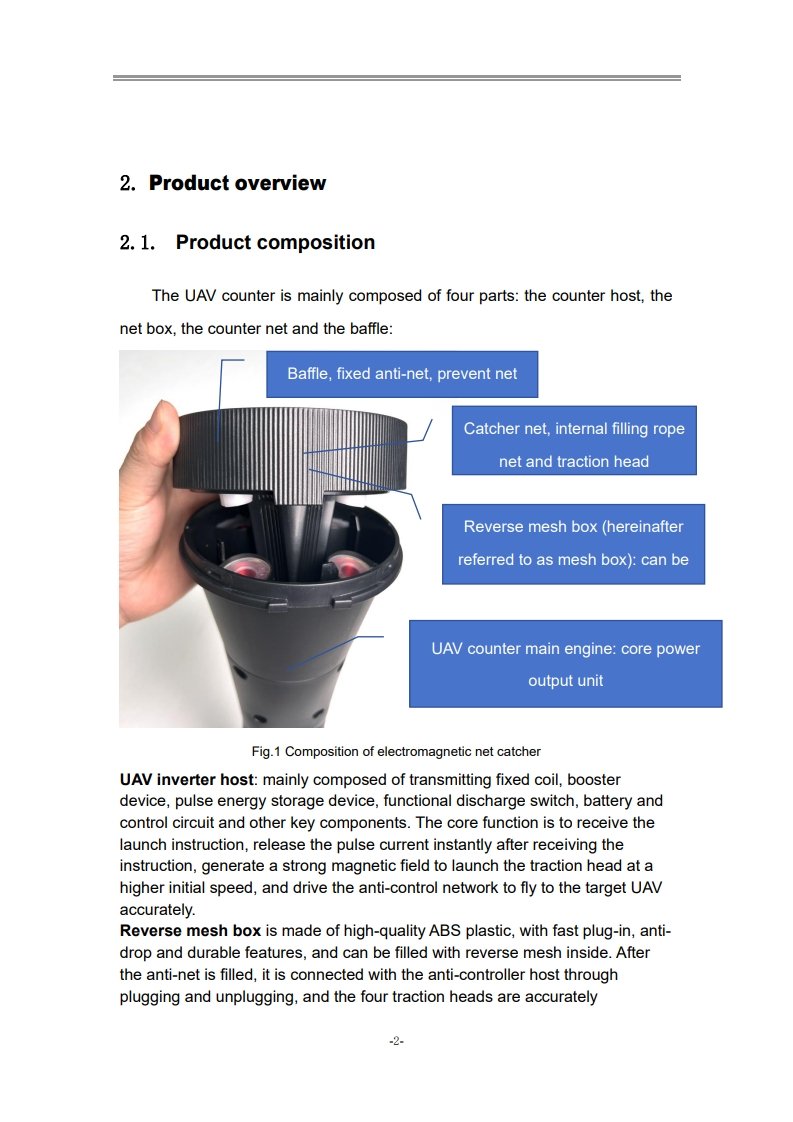 Designed for long-term standby use under proper maintenance, enabling constant readiness to prevent drone incursions while minimizing secondary risks from drone falls.