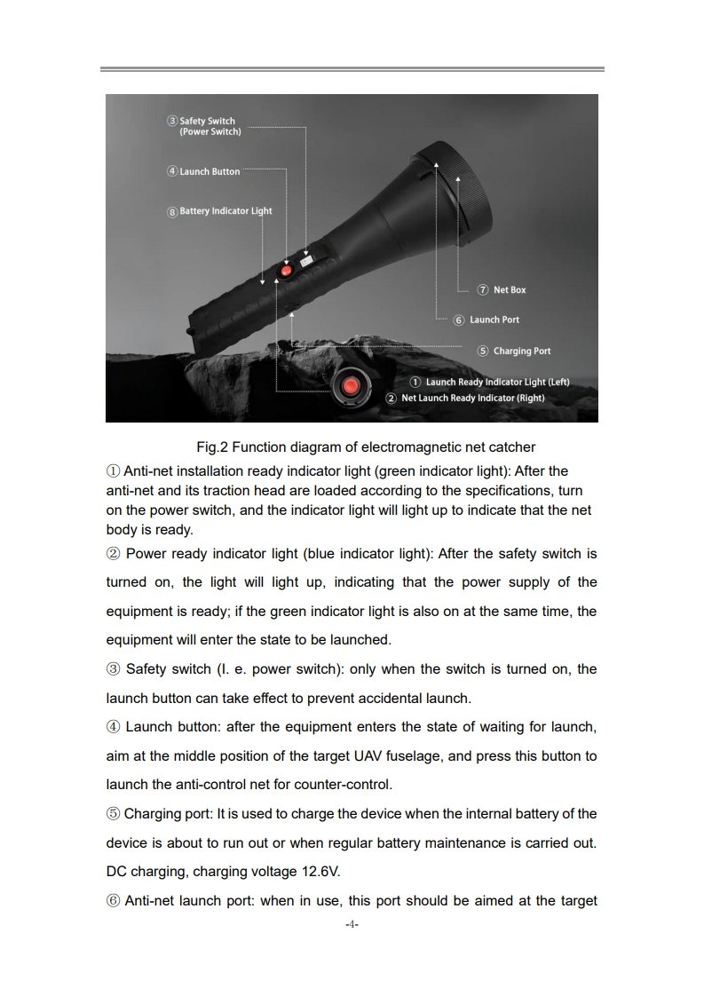 Fully charged, the device can continuously launch over 50 times, ensuring fast action during emergency situations such as unauthorized or boundary-crossing drone incursions.