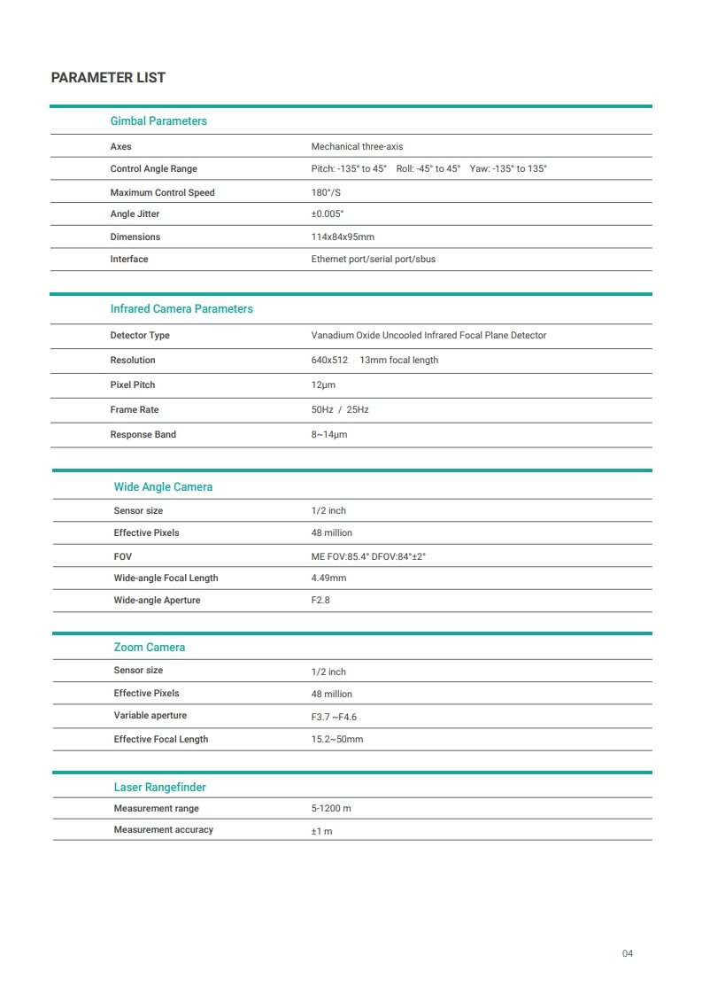 Equipped with a 48MP wide-angle camera, 48MP zoom camera, 640×512 thermal imager, and a 1,200 m laser rangefinder for all-day, all-weather observation and measurement.